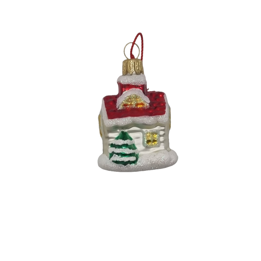 House | Red Roof Green Tree Glitter Windows (E)